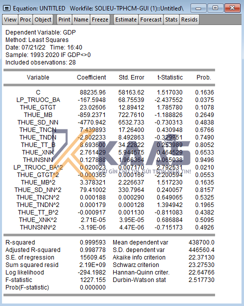 Ví dụ: Tác động của thuế đến tăng trưởng kinh tế trên địa bàn Tp. Hà Nội